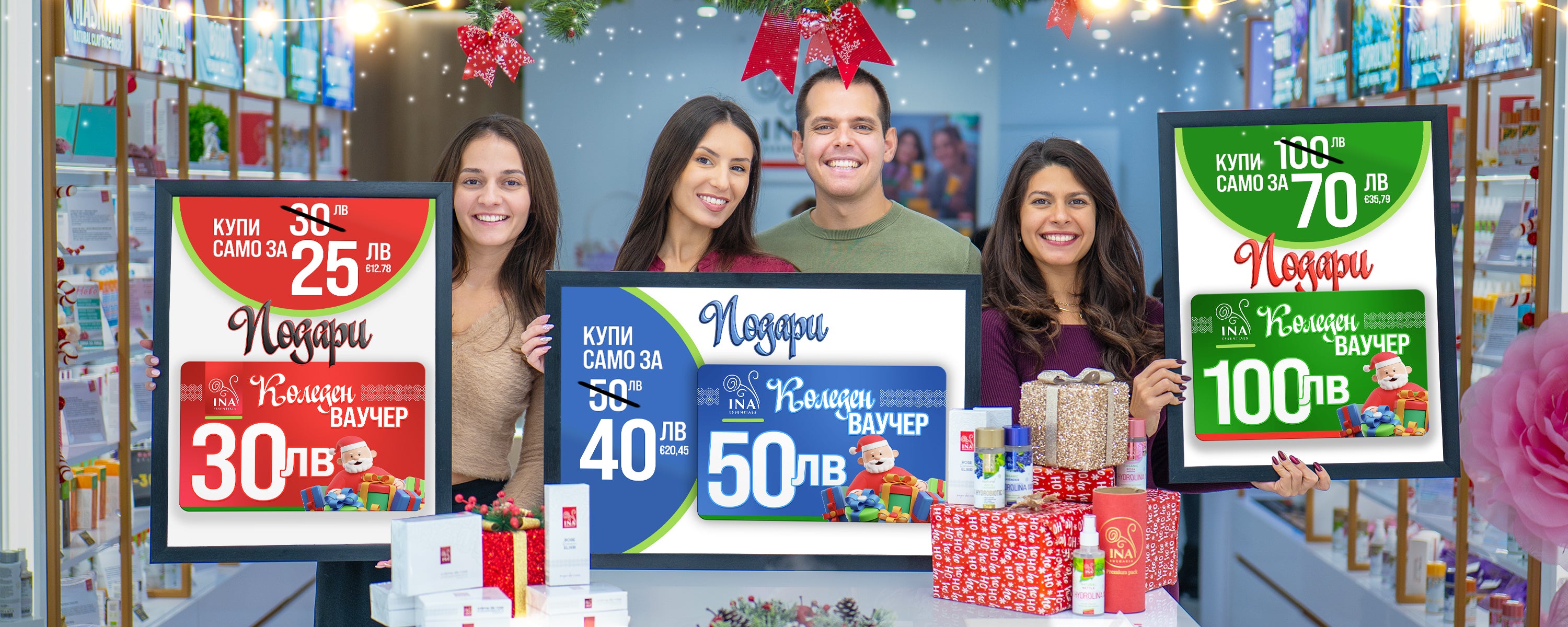 Насладете се на цялостно преживяване с продуктите на InaEssentials. Нашите InaEssentials натурални продукти пристигат в Nature INA Box - дизайнерска кутия от рециклиран картон, която улавя историята и ценностите на семейството ни - а именно грижа за природата и грижа за Вас - нашите клиенти.