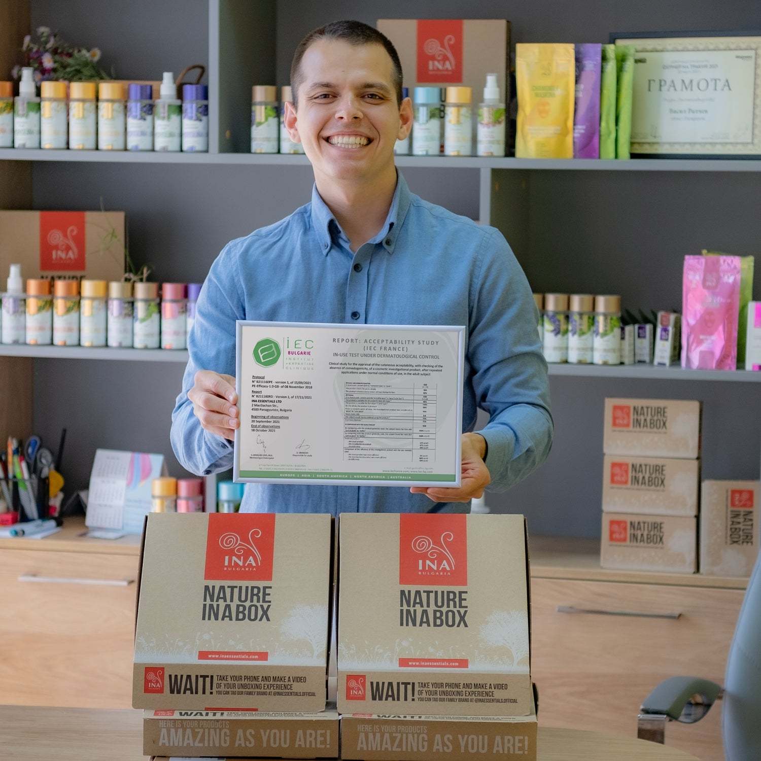 "Най-важната част за нас са всички истории на нашите клиенти. Трите ни деца наистина ни помогнаха да предложим продуктите ни на много пазари в Европа. Когато синът ми Васил учеше в университета "Рединг" във Великобритания, той стартира InaEssentials.co.uk. След като видяхме реакциите на хората извън България, си поставихме за цел да предлагаме продуктите ни с местна доставка на всеки пазар в Европа. Щастлива съм да кажа, че днес имаме доволни клиенти от цяла Европа, а също и от САЩ и Австралия. Техните разкази отличават семейния ни бранд от всички останали."