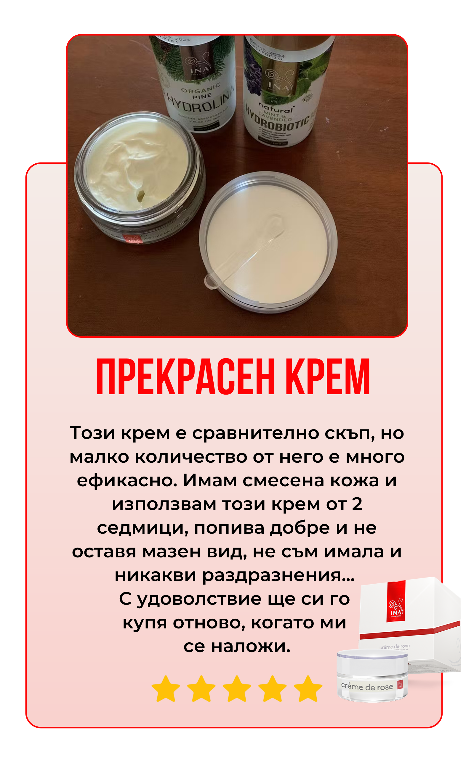 Crème de Rose от InaEssentials е именно това – изтънчен баланс между природа и наука, предназначен да възстанови и подчертае естествената красота на кожата.