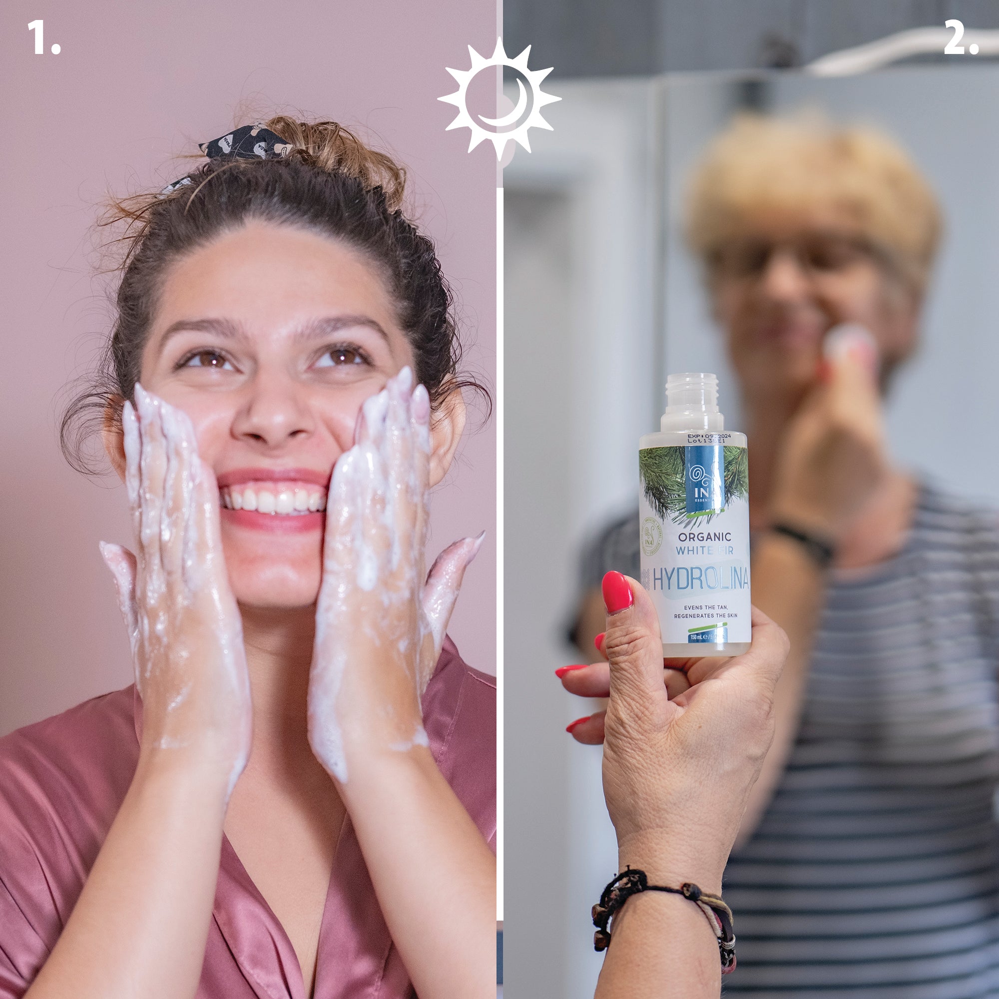 Тонизиране: Тоникът помага за балансиране на pH нивото на кожата и подготвя кожата за следващите стъпки. Ако търсите натурална алтернатива за сутрешната си рутина Био Вода от Бяла ела - Hydrolina при Пигментация на кожата от InaEssentials е чудесен избор. Бялата ела стимулира производството на нови клетки и засилва естествения процес на регенерация на кожата, като подпомага изравняването на тена.