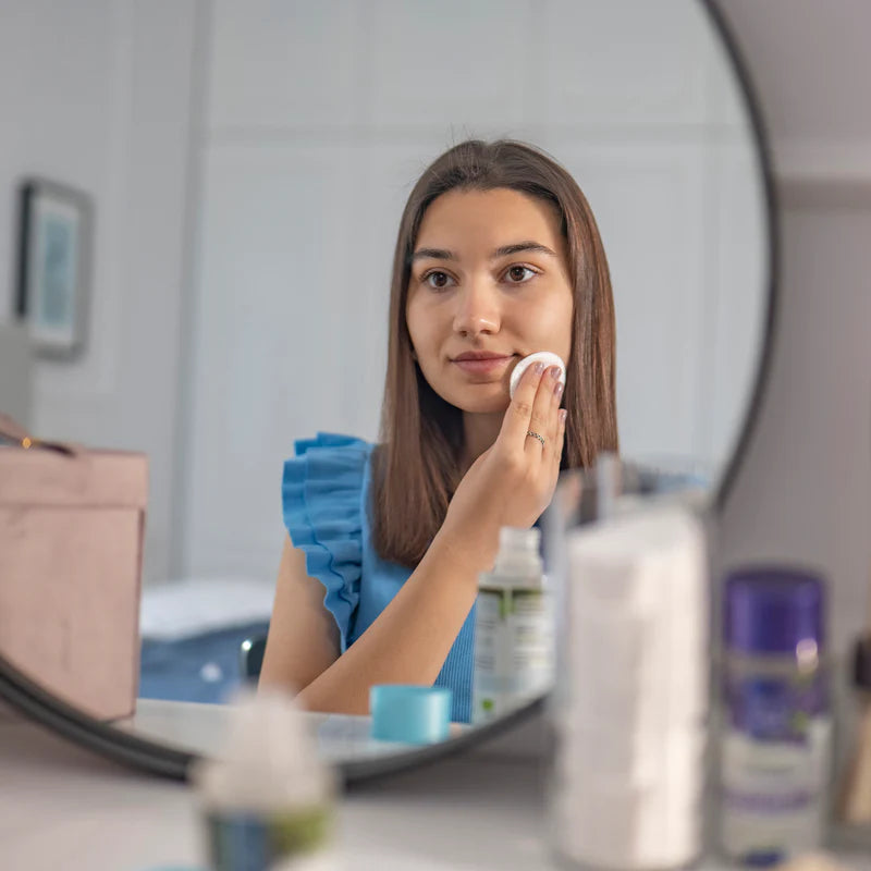Почистете желаните зони с обилно количество от водата с тампонче за грим.