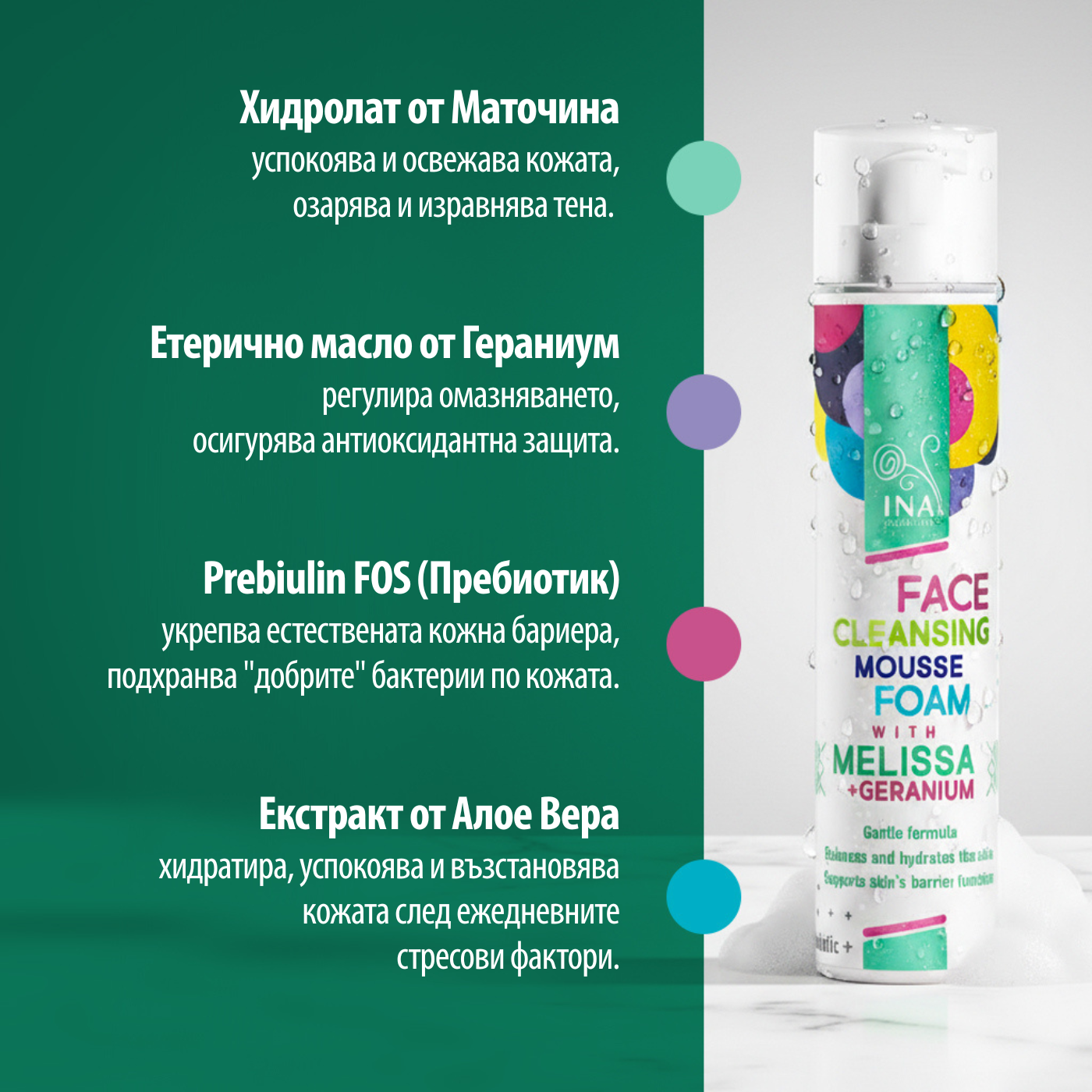 InaEssentials Натурална Почистваща пяна за лице с Маточина е идеалният продукт за тези, които търсят леко и нежно почистване, което не нарушава защитната бариера на кожата.