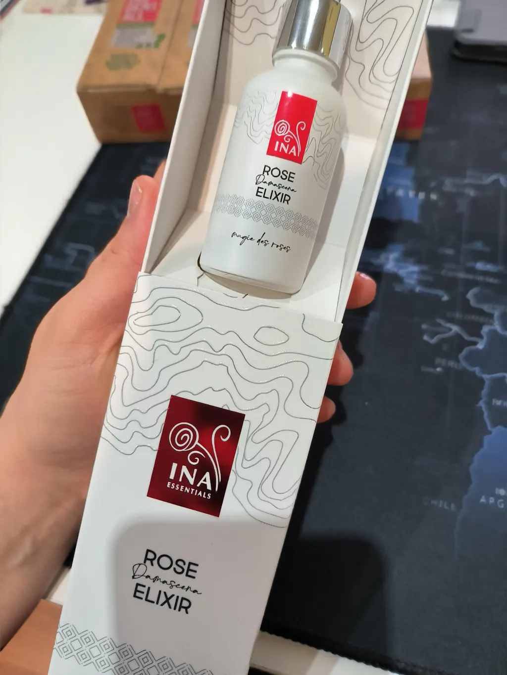 За оптимални резултати, използвайте в комбинация с InaEssentials’ Organic Rose Water - Hydrolina и Crème de rose - активен овлажнител с SPF30, обогатен с био розово масло за допълнителна хидратация и възстановяване.
