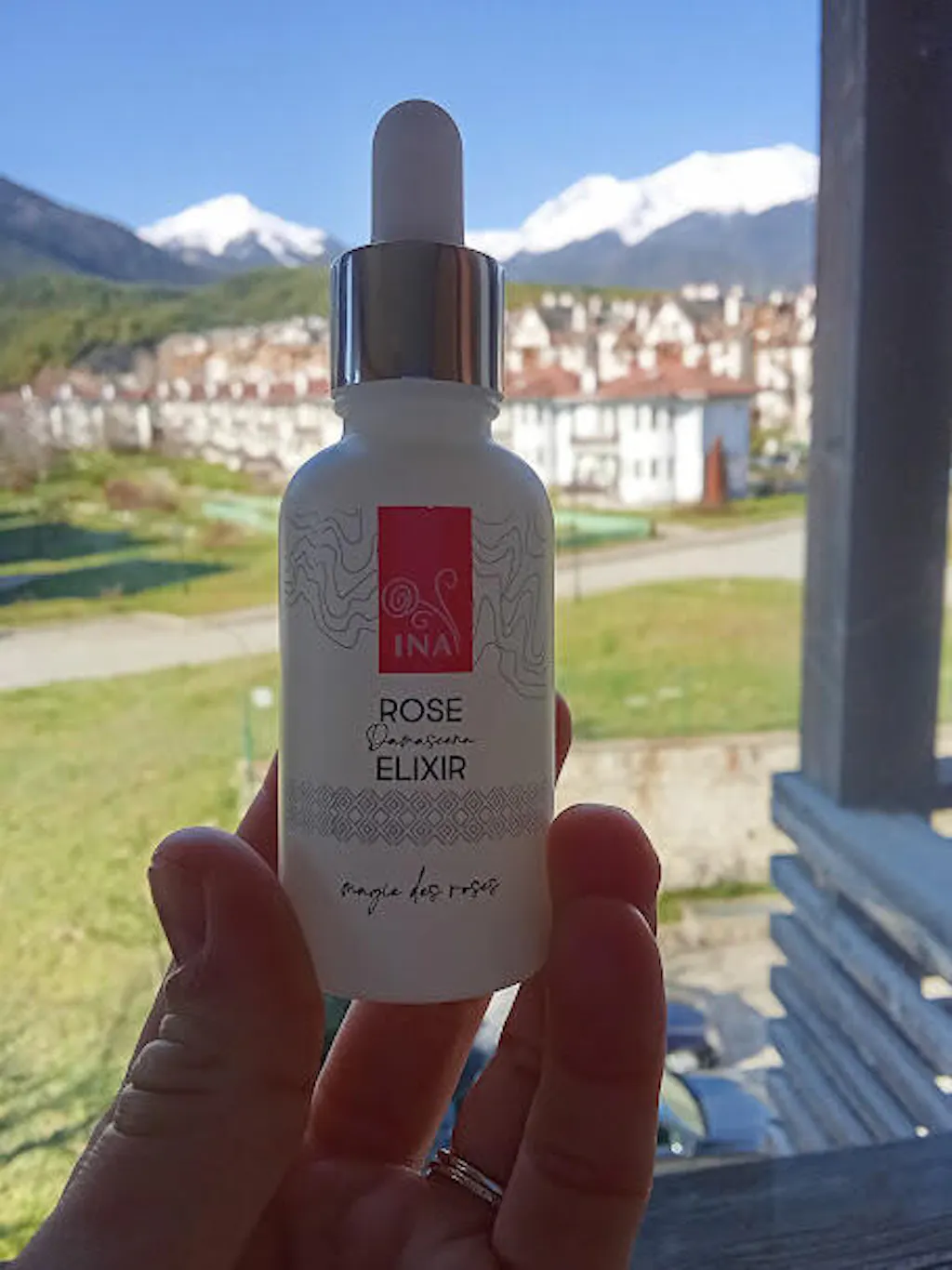 InaEssentials Rose Elixir е интензивен анти-ейдж серум за лице с премиум качество, формулиран с истинско розово масло и мощни растителни активни съставки. Леката му формула осигурява ежедневна подмладяваща грижа, като едновременно хидратира в дълбочина, стяга кожата и се бори с признаците на стареене.