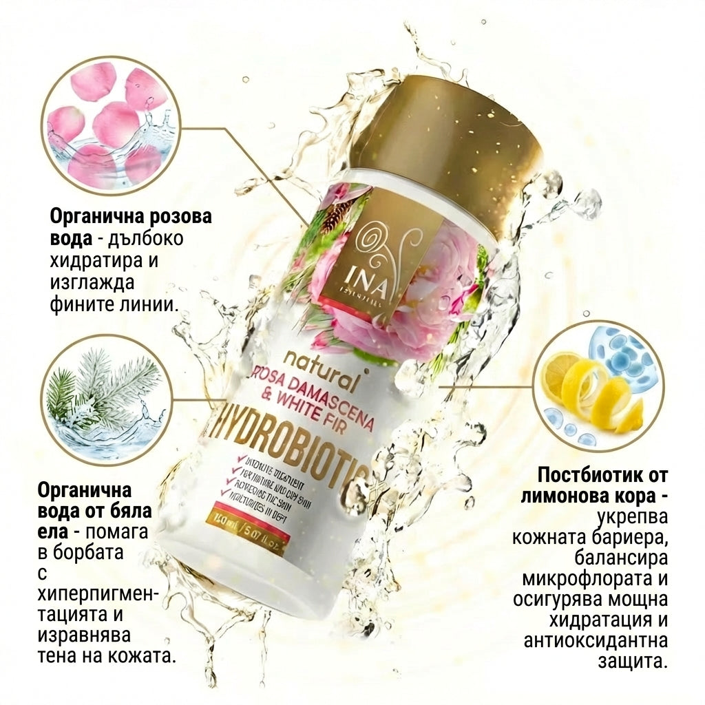 2. Hydrobiotic - Роза, Бяла ела и Лимонова кора - интензивна Anti-Age грижа (подарък)